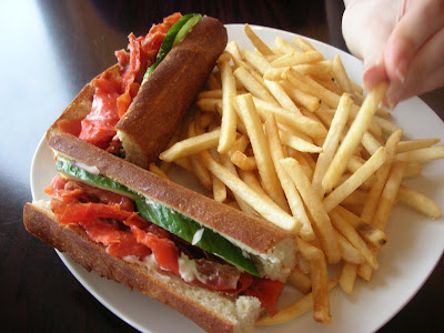 She let me have a bite and I must say this was another fantastic sandwich, I want to be critical when I go out and eat but I couldn't find anything wrong. All the flavors in this baguette went together to create a very refreshing tasting sandwich. Lemon, dill, and cucumber = very refreshing in my books.